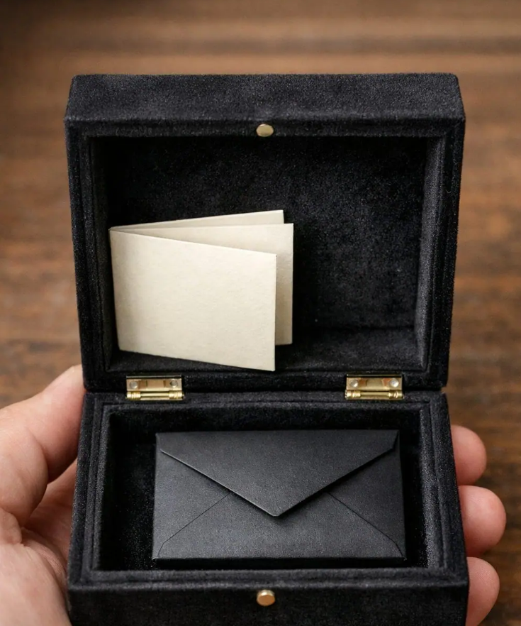 Puis, deux semaines plus tard, une petite boîte en velours m’attendait devant ma porte. Aucun mot, aucune explication. Sur le côté, une fine ouverture évoquait quelque chose de familier. La pièce semblait en être la clé.